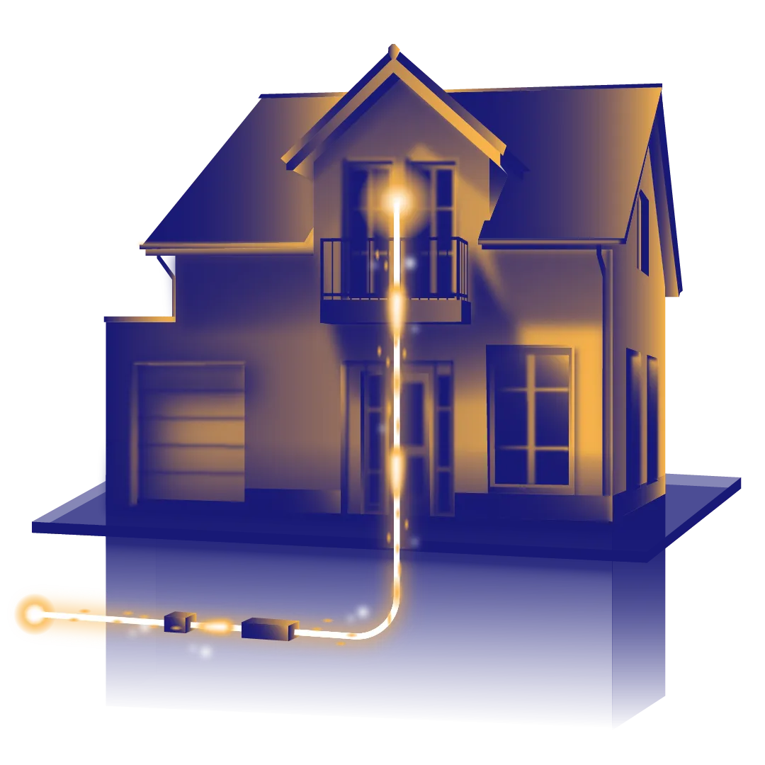 Nach der erfolgreichen Verlegung der Leitungen übernehmen wir auch die vollständige Glasfaser-Installation, bestehend aus der Hauseinführung, HÜP- und ONT-Montage sowie finaler Inbetriebnahme der gesamten Netzwerktechnik.